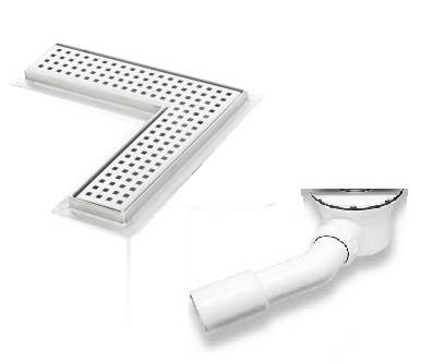 Sprchové žlaby rohové - typ L s plastovým sifonem.
